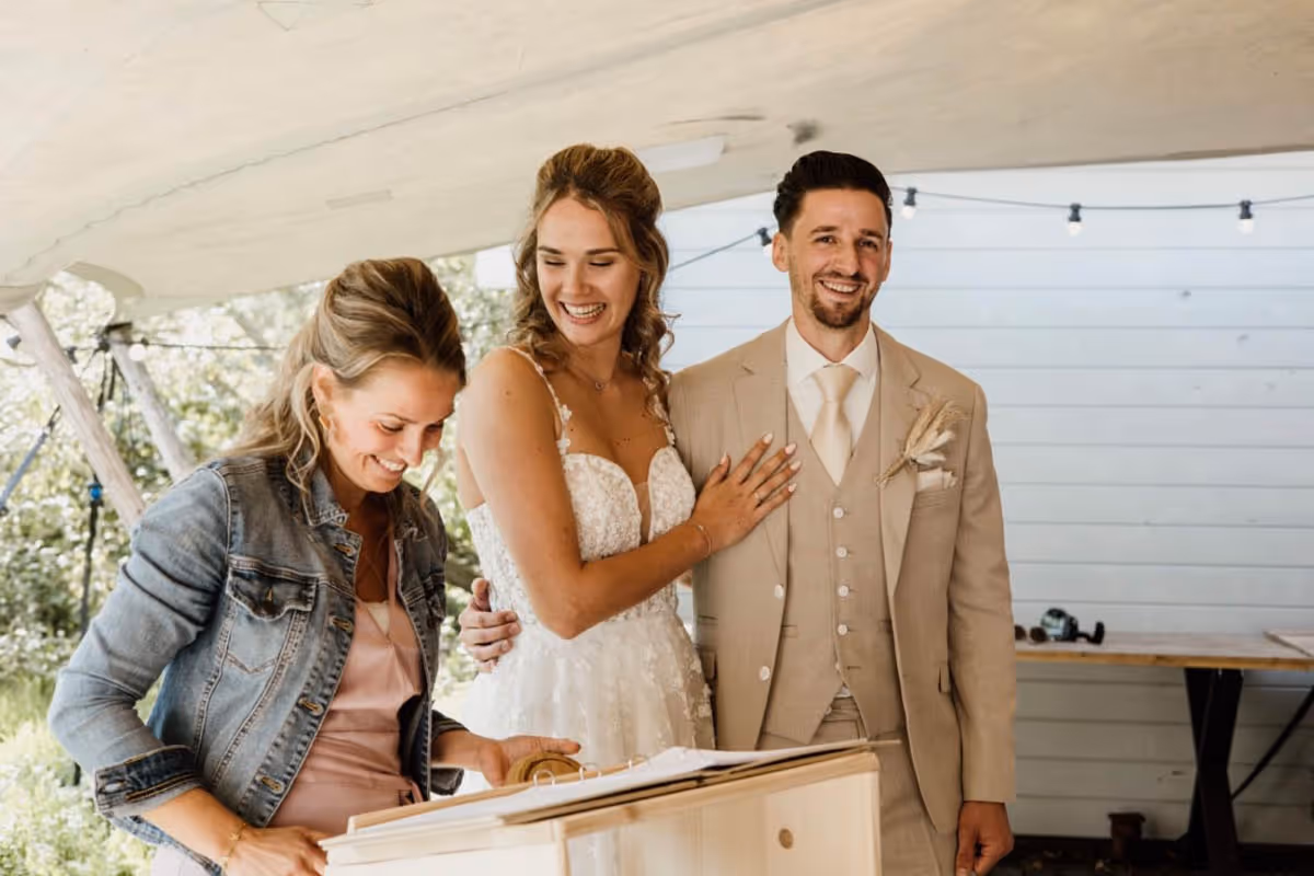 Jullie zoeken een vlotte, enthousiaste en betrokken zelfstandig trouwambtenaar/ceremoniespreker die daar voor gaat zorgen! Maar de keuze is reuze…Goed nieuws, want dan ben je hier he-le-maal aan het goede adres! Je wil natuurlijk geen suf praatje over je trouwlocatie, een spreker die zich verspreekt of waar je helemaal geen klik mee hebt.. En ik snap dat helemaal! Of je nou intiem trouwt op het strand, groots op je festival bruiloft in een weiland, knus in je achtertuin of misschien zelfs sprookjesachtig in het buitenland..